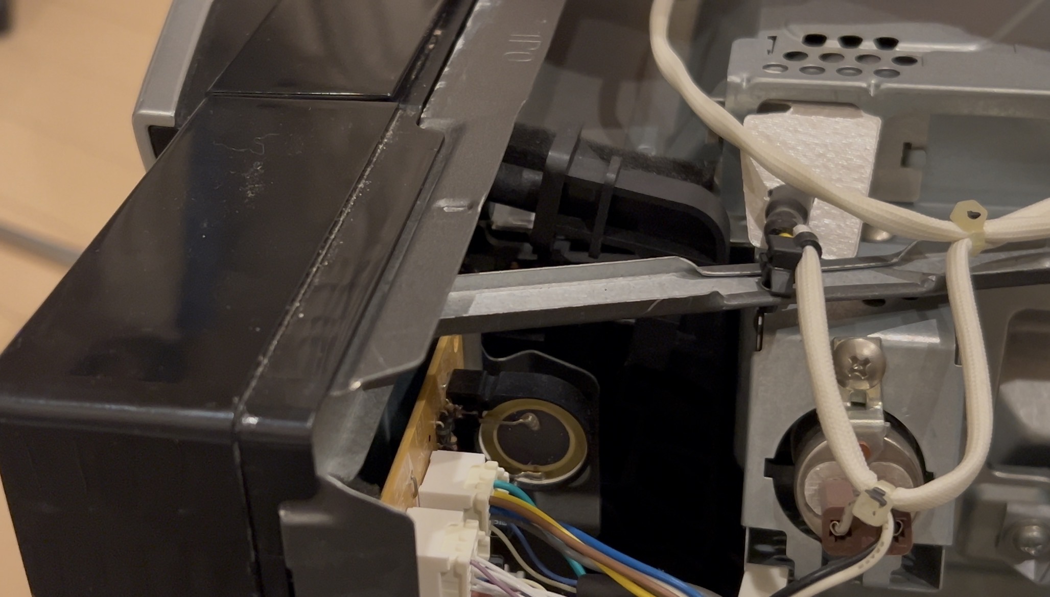 カバーを外すと、ドアを開閉するためのバネにアクセスできます。
